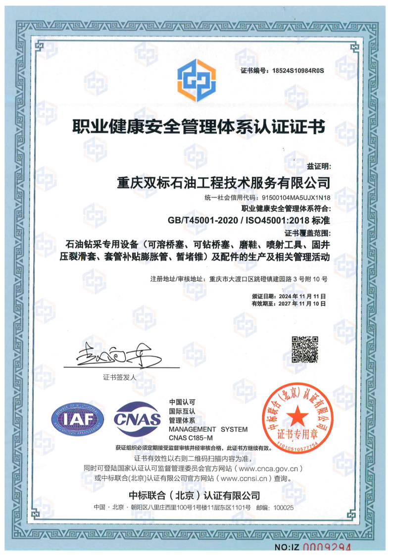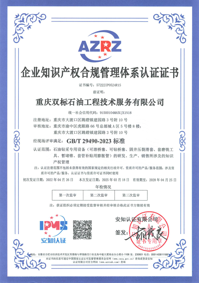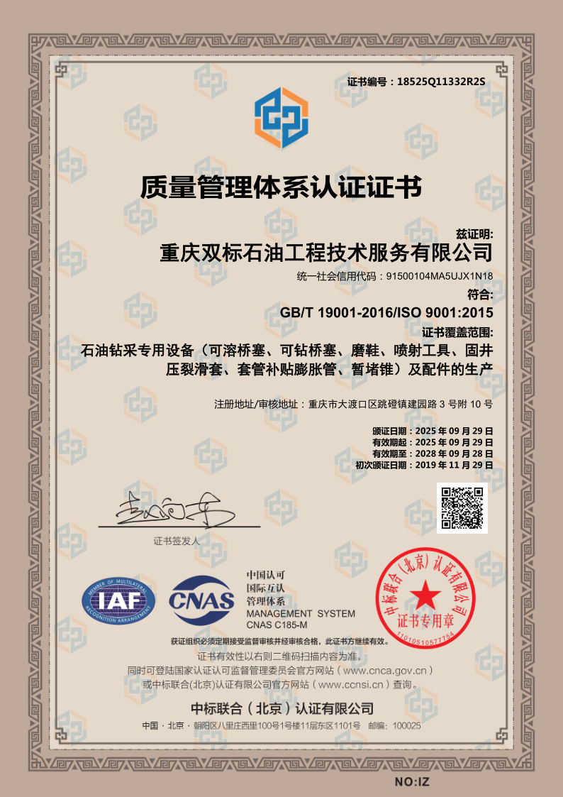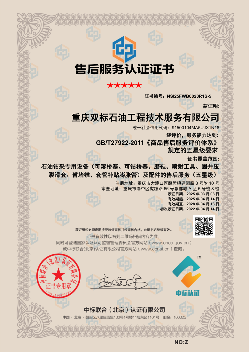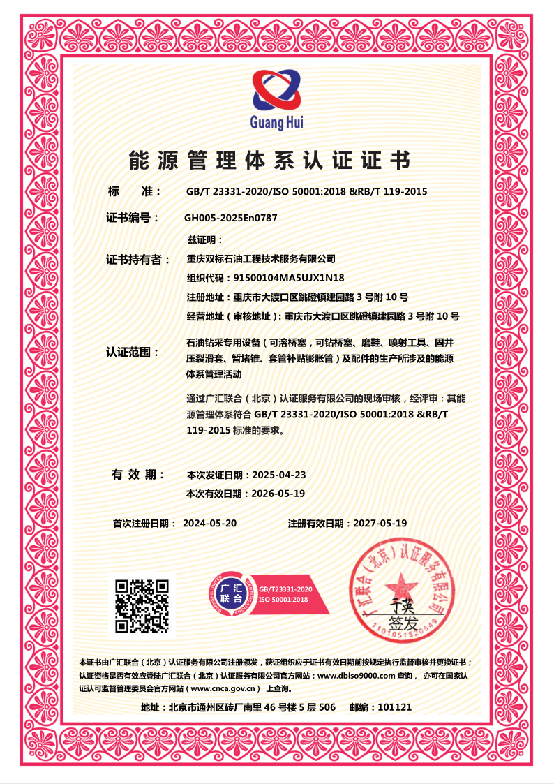Chongqing Shuangbiao Petroleum Engineering Co., Ltd. is located in Jianqiao Advanced Manufacturing Industrial Park, Dadukou District, Chongqing. The company was founded in 2017 and has been committed to providing high-quality petroleum engineering technology services to customers in oil and gas fields across the country since its establishment. In just a few years, the company has achieved rapid and stable development, forming a complete system of integrated process technology products.